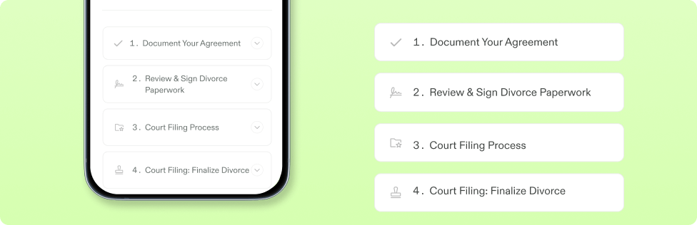 Your spouse’s involvement will depend on your specific situation. All divorce solutions require your spouse to sign the agreement before a settlement can be finalized. If you purchase Fully Guided Divorce, you and your spouse will both be needed for mediation sessions. Mediation works best when both spouses prepare for each session ahead of time and understand the need for compromise when negotiating an agreement.